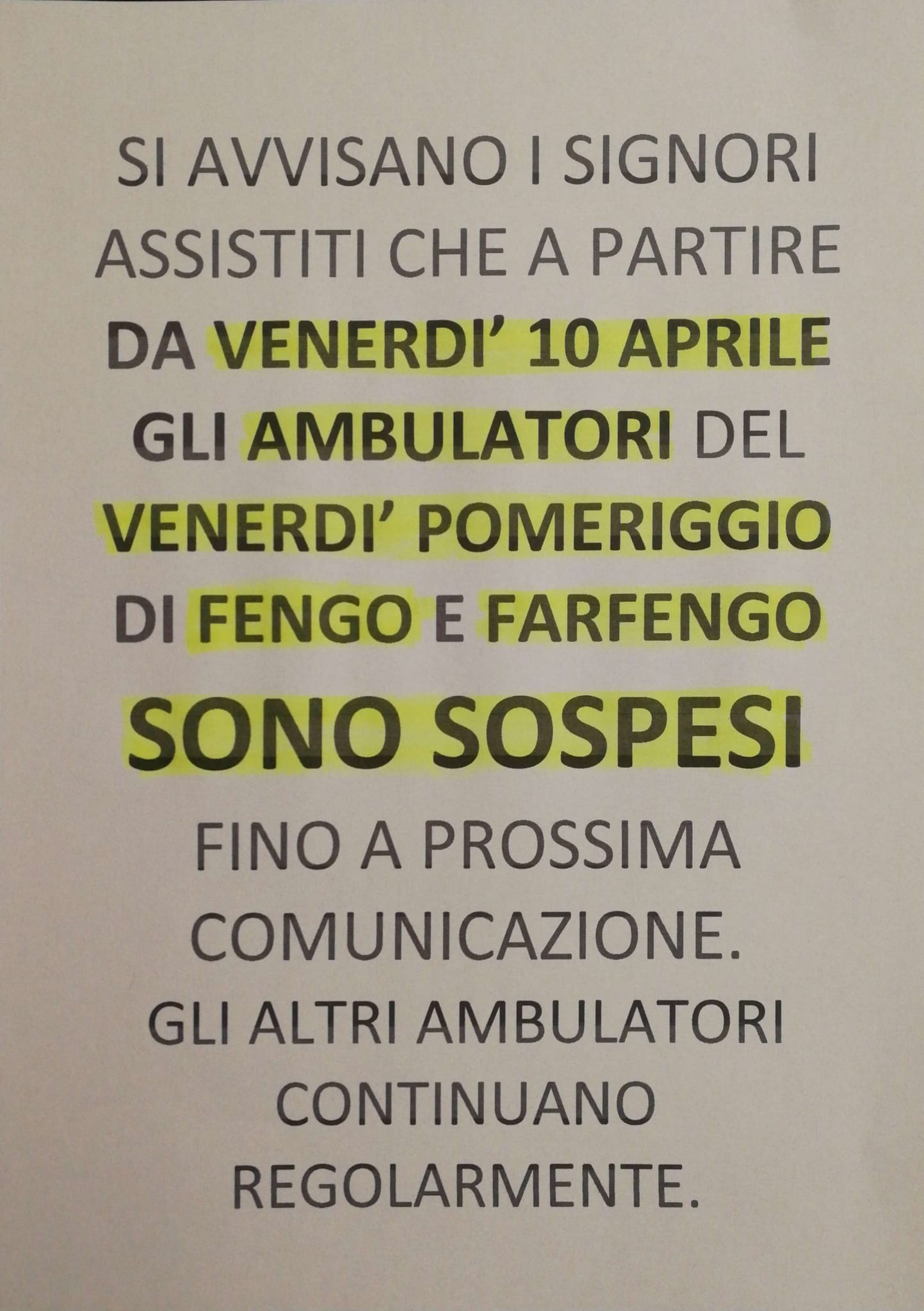 Ambulatori di Fengo e Farfengo - chiusura venerdì pomeriggio